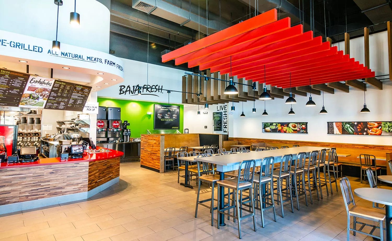 Baja Fresh is a Mexican fast-casual franchise founded in 1990 that emphasizes fresh, handmade, and farm-fresh ingredients without using microwaves, freezers, or can openers in its restaurants. The brand serves traditional fire-grilled Mexican favorites such as tacos, burritos, bowls, fajitas, and fresh salsas, catering to health-conscious consumers seeking flavorful, nutritious fast food. Since franchising began in 1995, Baja Fresh has expanded to over 100 locations nationwide, offering two concept options: Single freestanding restaurants and Express counter-service outlets, providing flexibility for various markets.