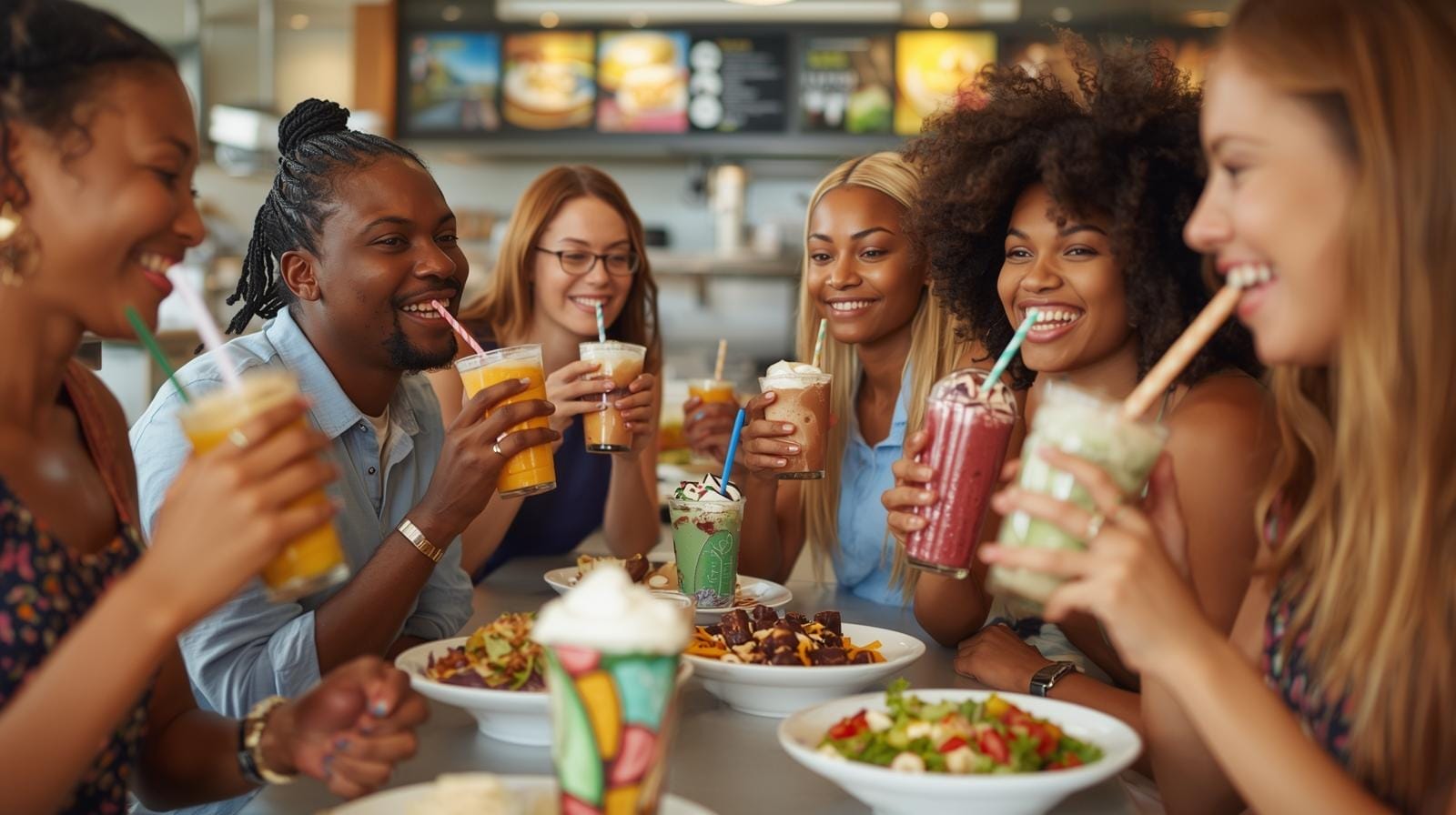 A franchise broker and franchisees shake hands on a deal.